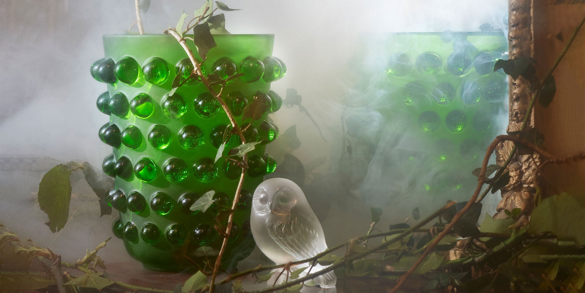 真の技術的偉業、そして独自のノウハウの象徴として、各ビーズは調和のとれたフォルムにデザインされ、繊細な脱型工程に耐えられるよう正確に配向されています。1933年にルネ・ラリックのクリエイティビティが生み出した、時を経ても色あせないグラフィック・イリュージョンをご堪能ください。