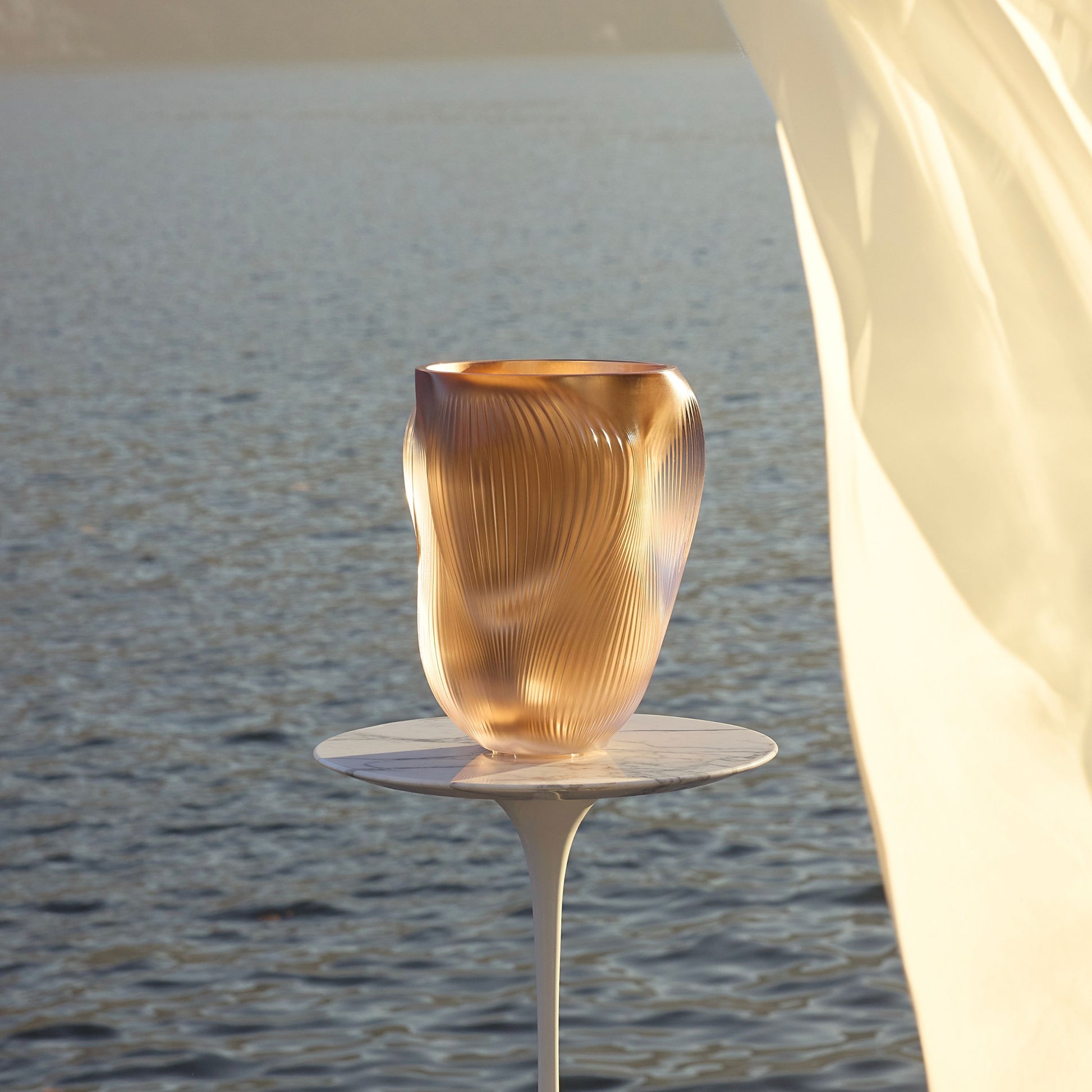 ラリックのクリスタルのラインに、空気が感覚的なドレープとなって形を成します。