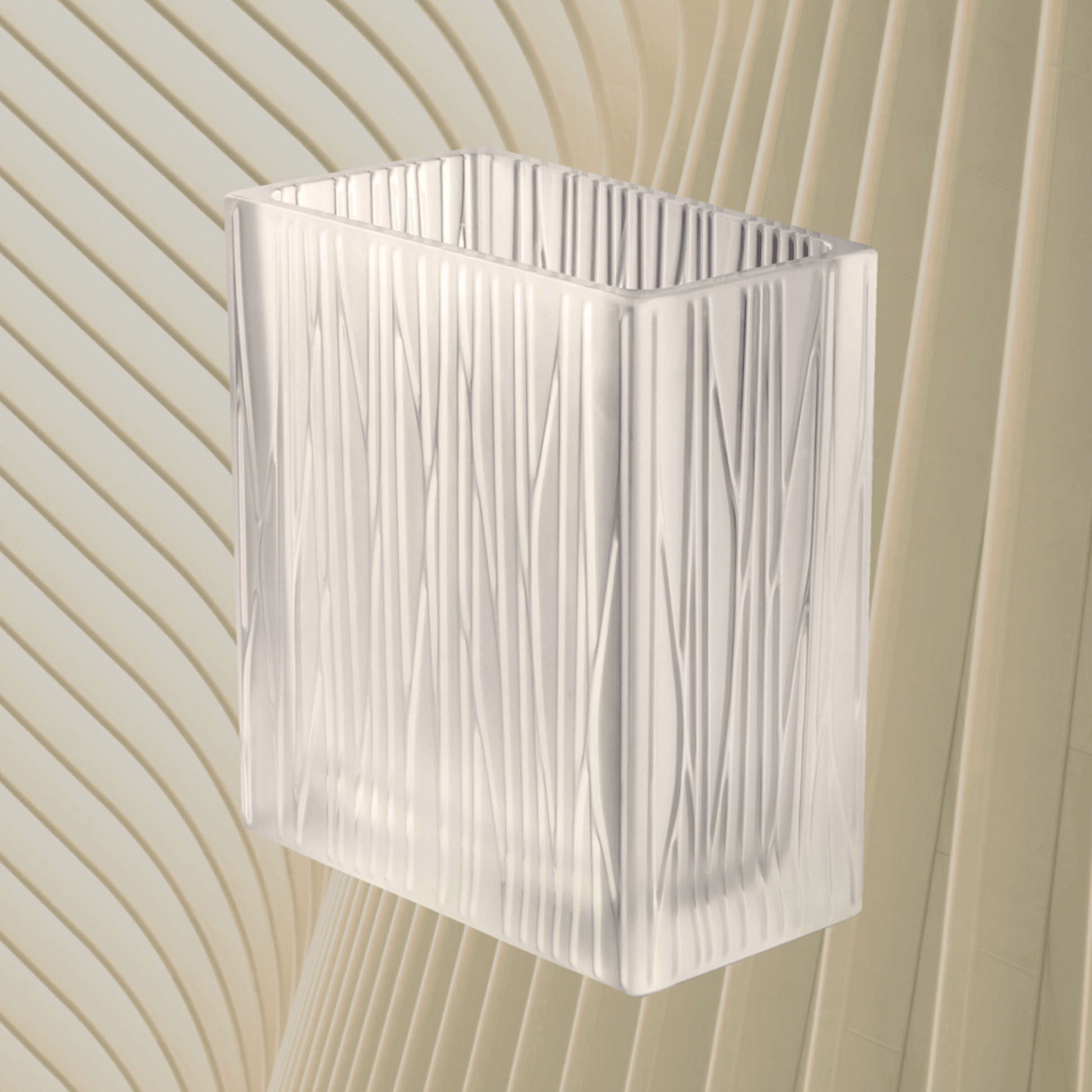 「エディフィシオ」フラワーベースは、ルディ・リッチオッティの革新的な建築からインスピレーションを得て、製造の技術を美しく称賛しています。技術、クリスタル、コンクリートが融合したこの作品において、ラリックは、一目でその作品とわかる建築物の巨匠の想像力に、その専門知識を提供しました。