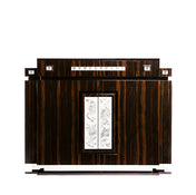 1928年、ルネ・ラリックは、キューバ産マホガニーの寄木細工を装飾するために、銀色の背景にプレス成形された白いガラス製の装飾パネル「メルル エ レザン」をデザインしました。これは、オリエントエクスプレスのプレジデンシャル・ワゴンに採用されました。「メルル エ レザン」のモチーフは、優雅さと「生きる芸術」を象徴し、小さなブドウの房をつつくメルルを表現しています。