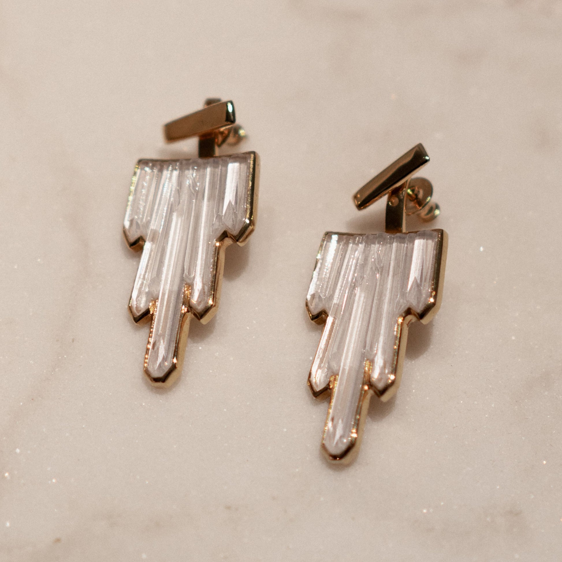 これらのエレガントなピアスは、3つの異なるスタイルを提供します。クリスタルのモチーフは耳の後ろに配置され、チップの要素が前面を際立たせます。両方一緒に着用して完成されたスタイルを演出したり、チップのみを使用して控えめな印象に仕上げたり、大胆でトレンド感のあるアシンメトリーなスタイルを楽しんだりできます。