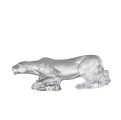 緊張した筋肉、鋭い視線、警戒態勢を整えた五感。跳びかかる準備が整ったライオンのオブジェは、金色とクリアな光沢を持つ貴重なクリスタルで、その野生の本能を鮮やかに表現しています。